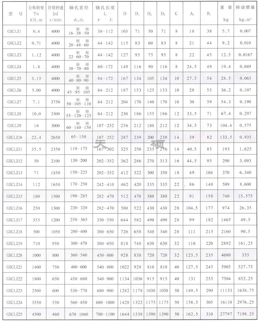 4. 鼓形齒聯(lián)軸器軸孔型式采用Y、Z1和J1組合,滿足多種軸孔連接需要。 鼓形齒聯(lián)軸器產(chǎn)品包括GICL、GⅡCL,GICLZ,GⅡCLZ和NGCL五種型式鼓形齒聯(lián)軸器