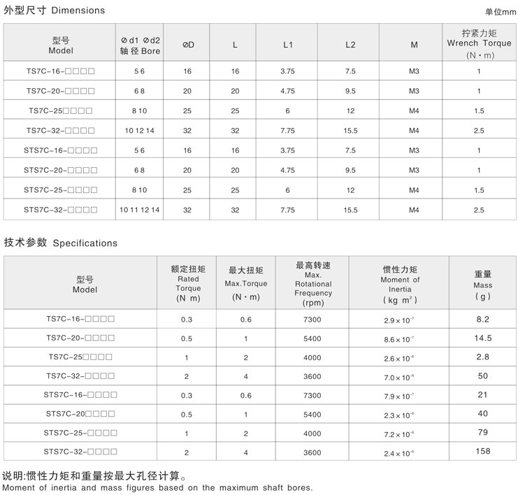 5. 剛性聯(lián)軸器兩端不同孔徑大小的產(chǎn)品型號(hào)也備有庫(kù)存