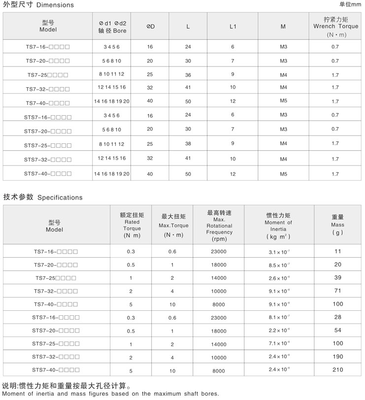 5. 剛性聯(lián)軸器兩端不同孔徑大小的產(chǎn)品型號(hào)也備有庫(kù)存