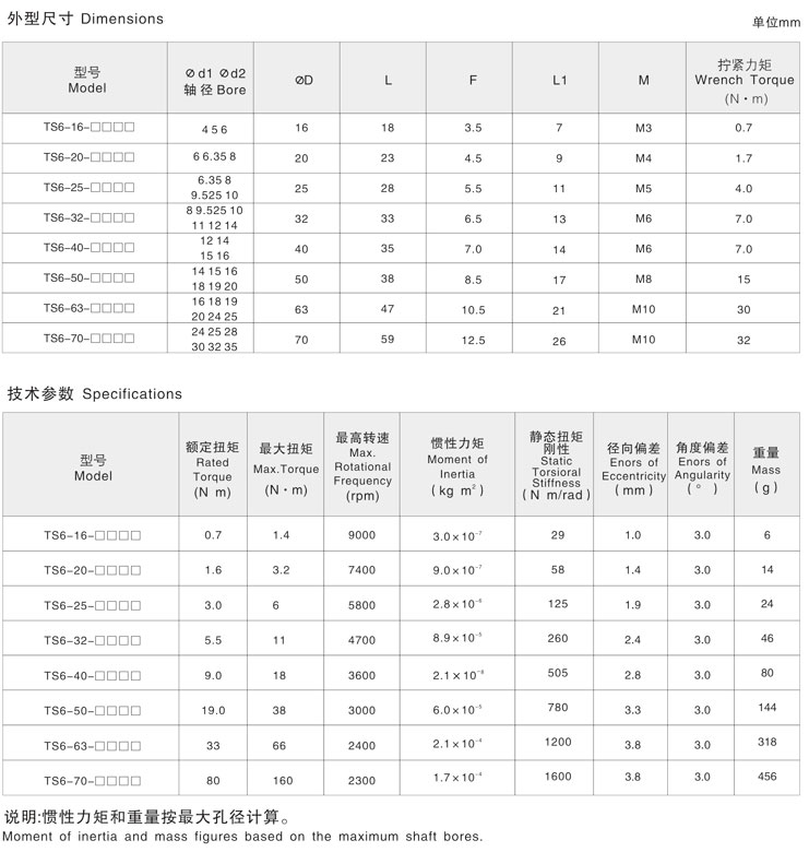 5. 剛性聯(lián)軸器兩端不同孔徑大小的產(chǎn)品型號(hào)也備有庫(kù)存